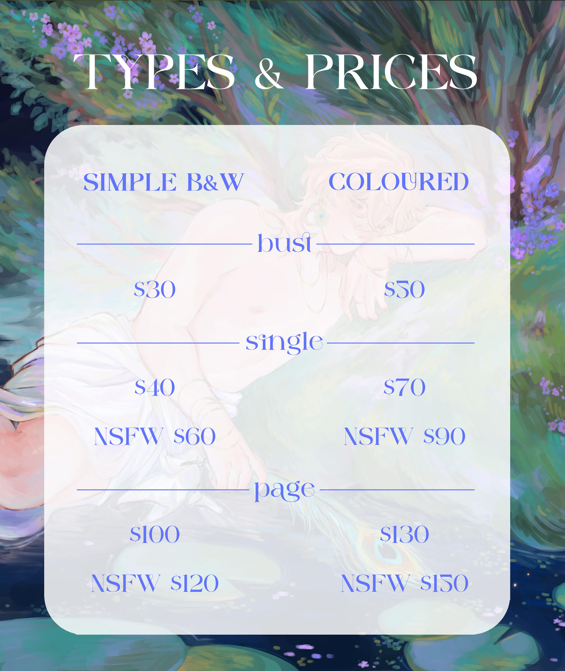 page - max 4 poses per piecea colour wash overlay is also aviable for the b&w option✦additional character will be +50% of the price - max 3 characters